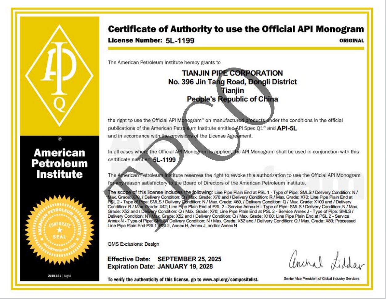 API 5CT会标许可证书