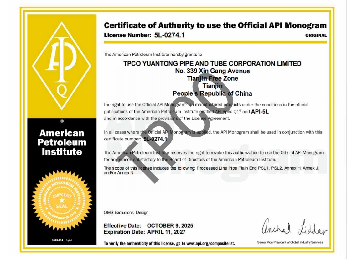 API 5L会标许可证书-元通
