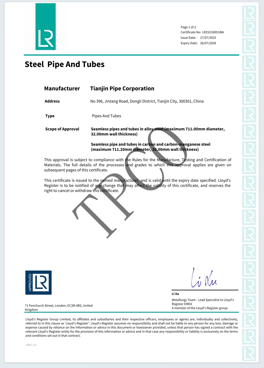 LR劳氏船级社证书