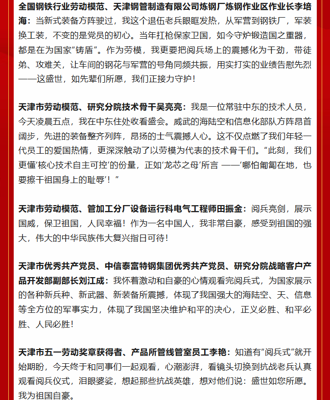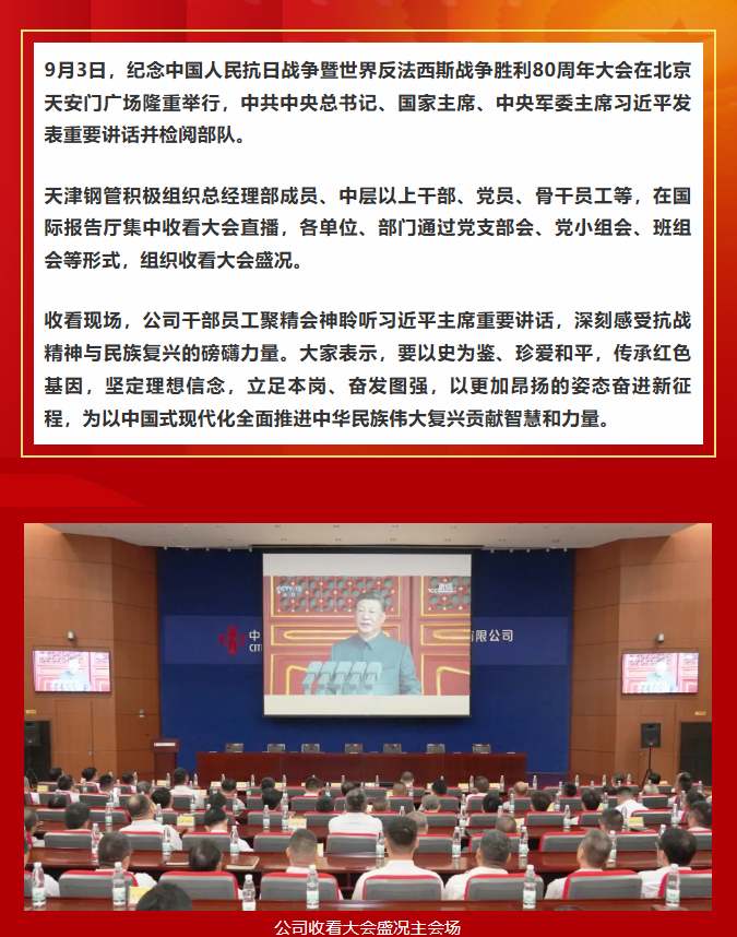 天津钢管干部员工集中收看九三阅兵,反响热烈!