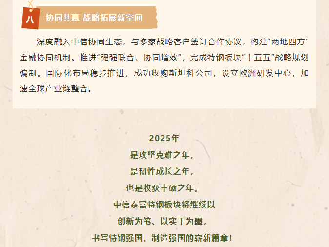 中信泰富特钢板块年度工作报告 • 课堂笔记