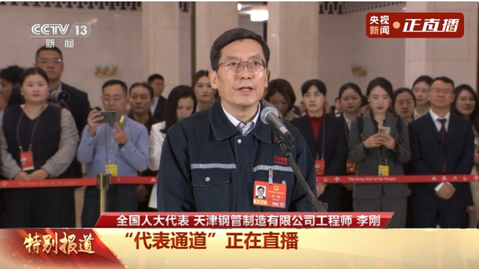 今天下午,十四届全国人大四次会议第三场“代表通道”在人民大会堂举行。全国人大代表、天津钢管制造有限公司管加工事业部元通分厂主任工程师李刚走上通道,接受采访。